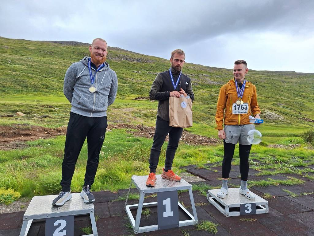 Á myndinni sem fylgir má sjá verðlaunahafana í Trékyllisheiðin Midi (26 km) í karlaflokki. F.v. Bjarni Hlíðkvist Kristmarsson (2. sæti), Almar Viðarsson (1. sæti) og Hjálmar Hinz (3. sæti).